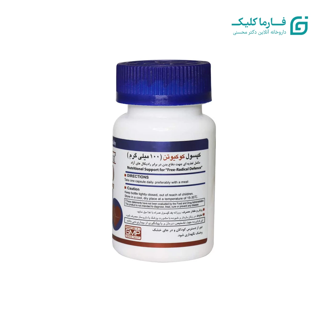 - کپسول کوکیوتن هلث برست، حاوی 100 میلی گرم کوآنزیم کیوتن به ازای هر کپسول