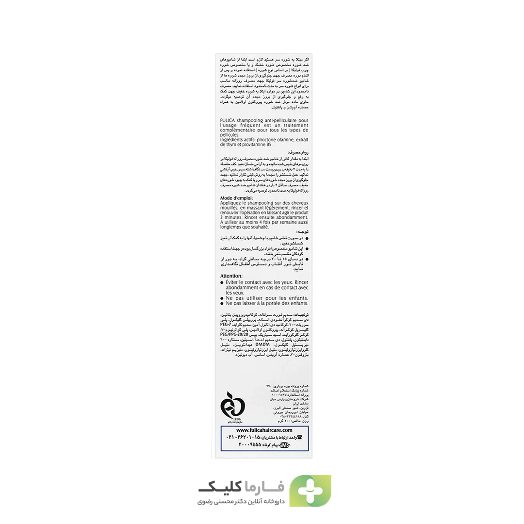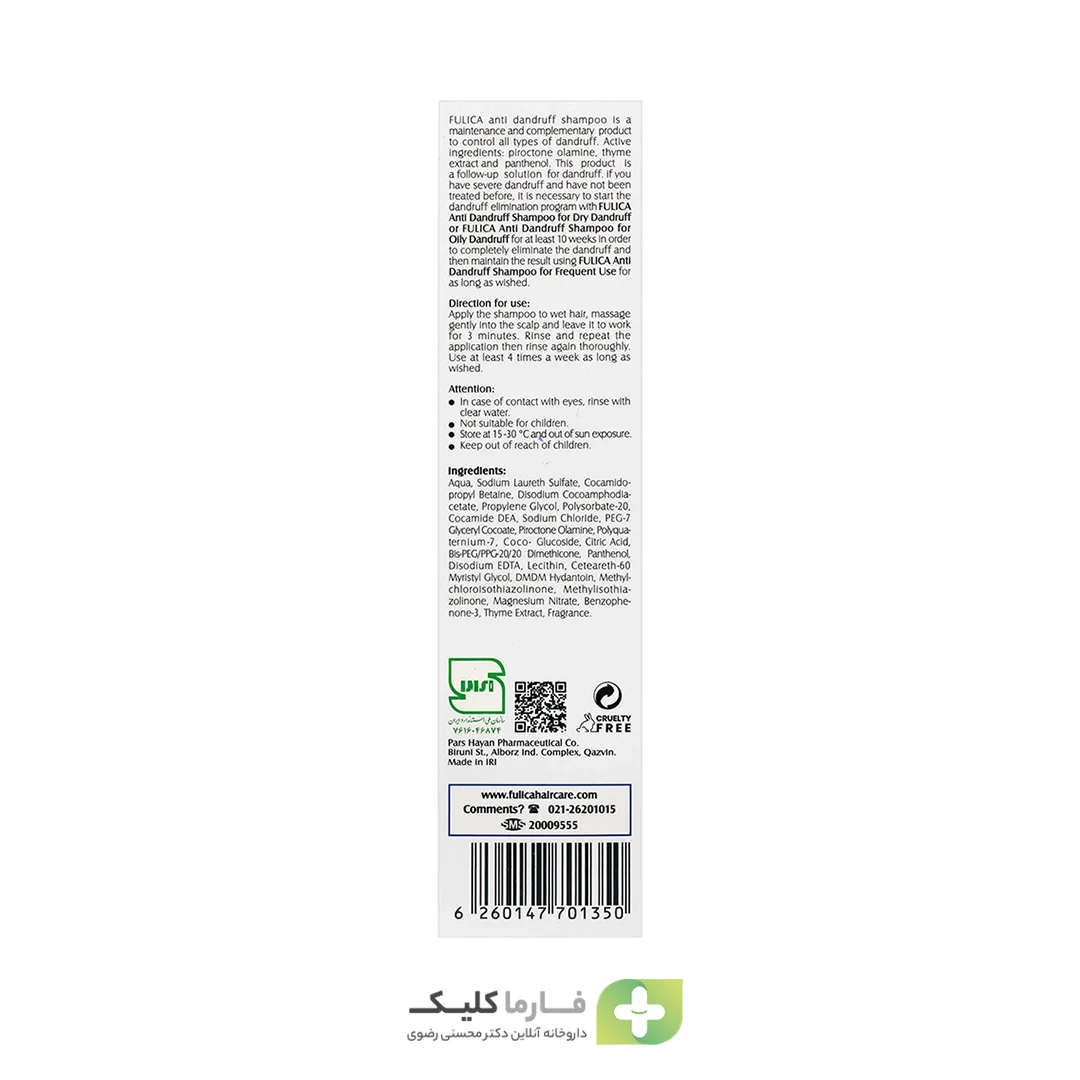 این محصول برای موهای خشک و چرب قابل استفاده بوده و علاوه بر پاککنندگی مطلوب، مانع از ایجاد پوستهریزی، خارش و التهاب میشود. در صورتی که به دنبال تهیه این نوع محصولات مراقبت از مو با اطمینان از اصالت و کیفیت هستید، داروخانه فارما کلیک داروخانه آنلاین دکتر محسنی رضوی یکی از گزینههای معتبر برای خرید آنلاین به شمار میرود.