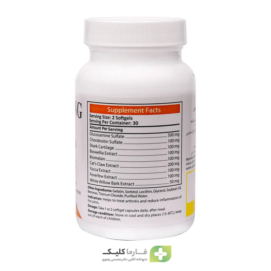 • حاوی گلوکوزامین، کندرویتین و عصاره غضروف کوسه برای حمایت از سلامت مفاصل و غضروف‌ها