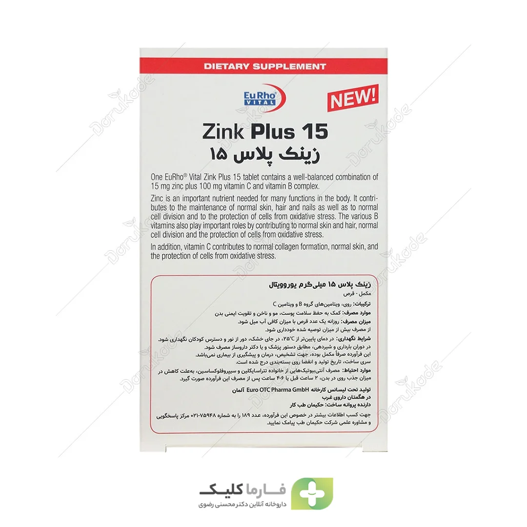 • هر جعبه زینک پلاس ۱۵ یوروویتال قابل استفاده به مدت ۶۰ روز