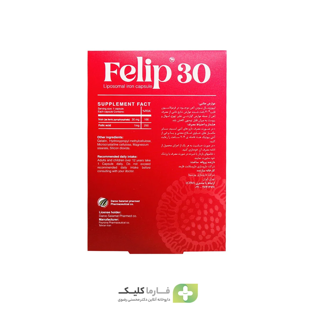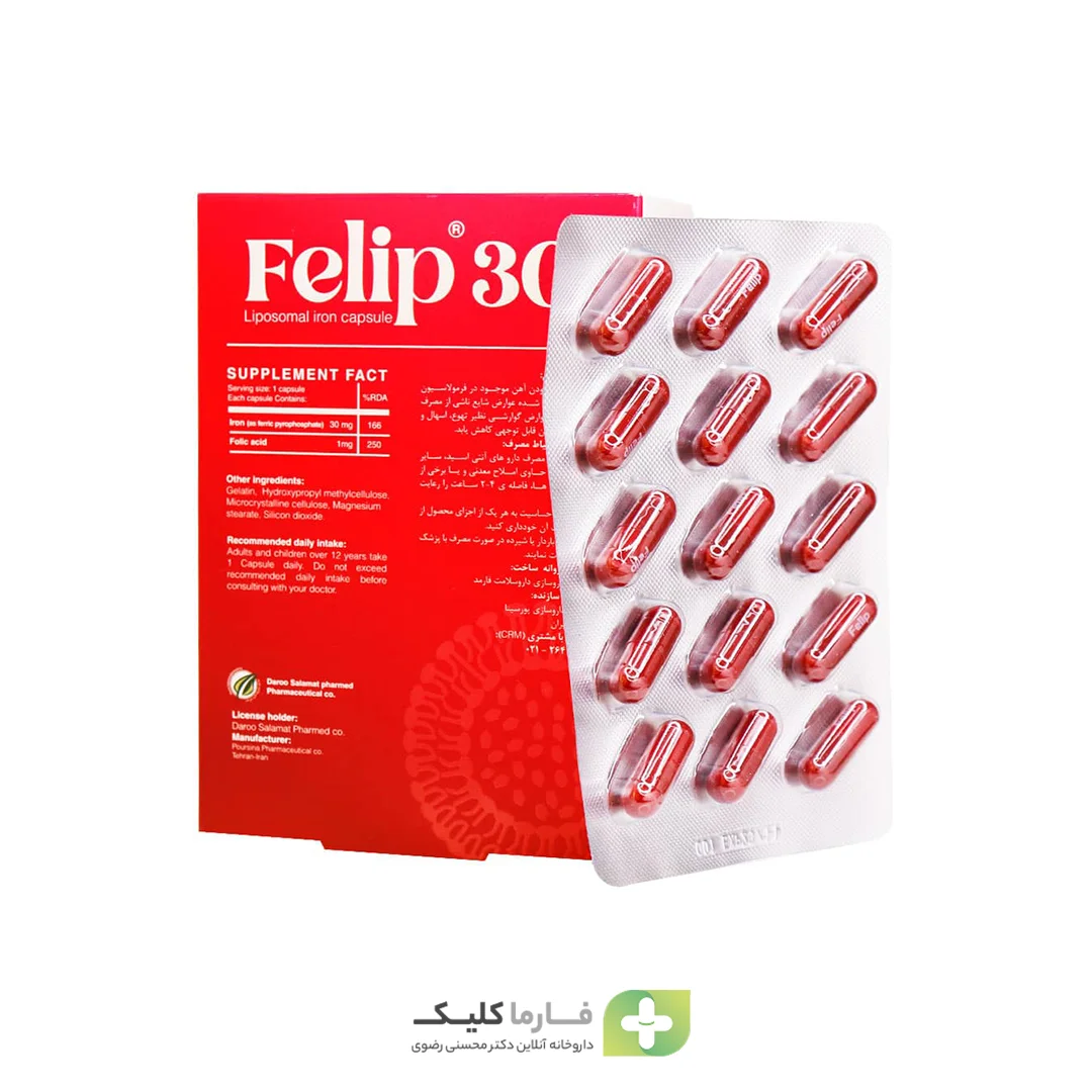 قرص فلیپ ۳۰ یک مکمل غذایی پیشرفته و مؤثر برای پیشگیری و درمان کمخونی ناشی از فقر آهن و کمبود فولیک اسید است. این محصول با دارا بودن ۳۰ میلیگرم آهن به فرم لیپوزومال و ۱ میلیگرم فولیک اسید (ویتامین B9)، نیاز روزانه بدن به این مواد مغذی حیاتی را تأمین میکند. آهن لیپوزومال به دلیل ساختار ویژه خود، بهطور مستقیم از مخاط روده جذب شده و در نتیجه باعث افزایش کارایی جذب و کاهش عوارض گوارشی ناشی از مصرف آهن میشود.