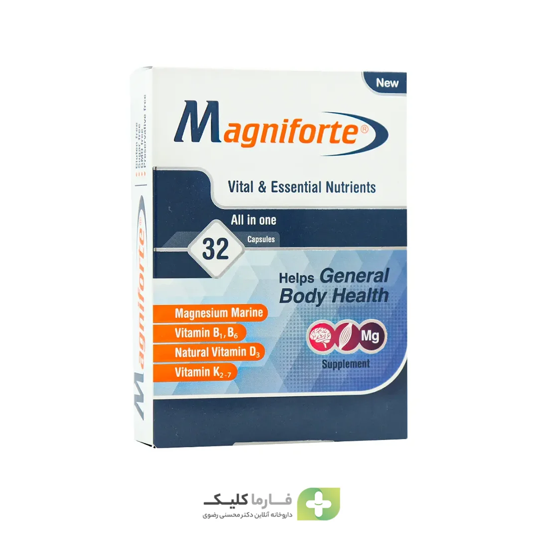 قرص مگنیفورت حاوی منیزیم دریایی طبیعی، ویتامینهای B1، B6، D3 و K2 است و به تقویت عملکرد سیستم عصبی و عضلات کمک میکند. این مکمل با کاهش گرفتگی و اسپاسمهای عضلانی، بهبود عملکرد قلب و عروق، حفظ سلامت استخوانها و کاهش استرس و خستگی اثرگذار است. همچنین، مگنیفورت در کاهش علائم سندرم پیش از قاعدگی و حملات میگرنی و تنظیم فشار و قند خون مفید است. ترکیبات طبیعی و گیاهی این محصول باعث جذب بهتر و حداقل عوارض جانبی شده و برای افرادی که به دنبال افزایش انرژی و آرامش عضلانی هستند، انتخاب مناسبی است.