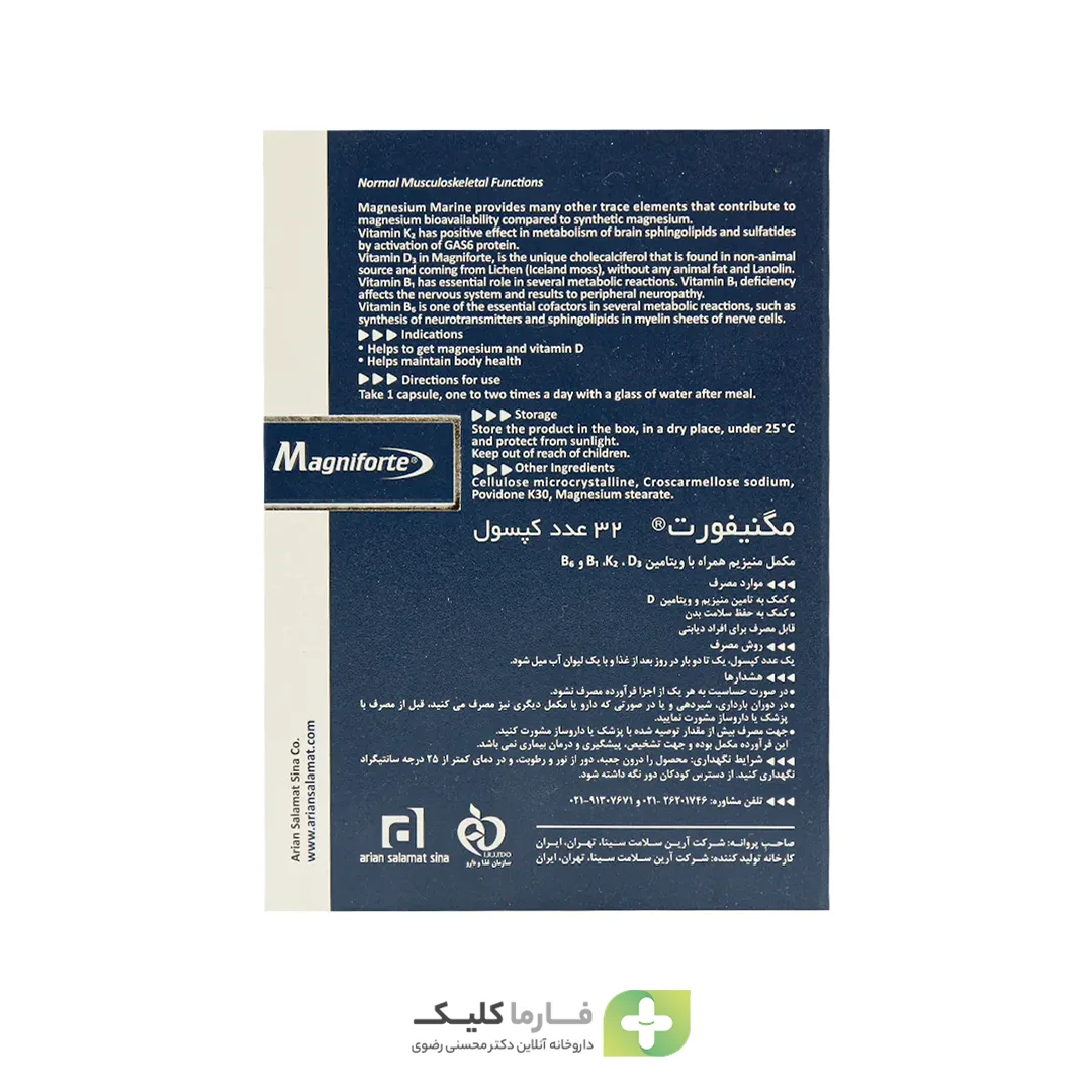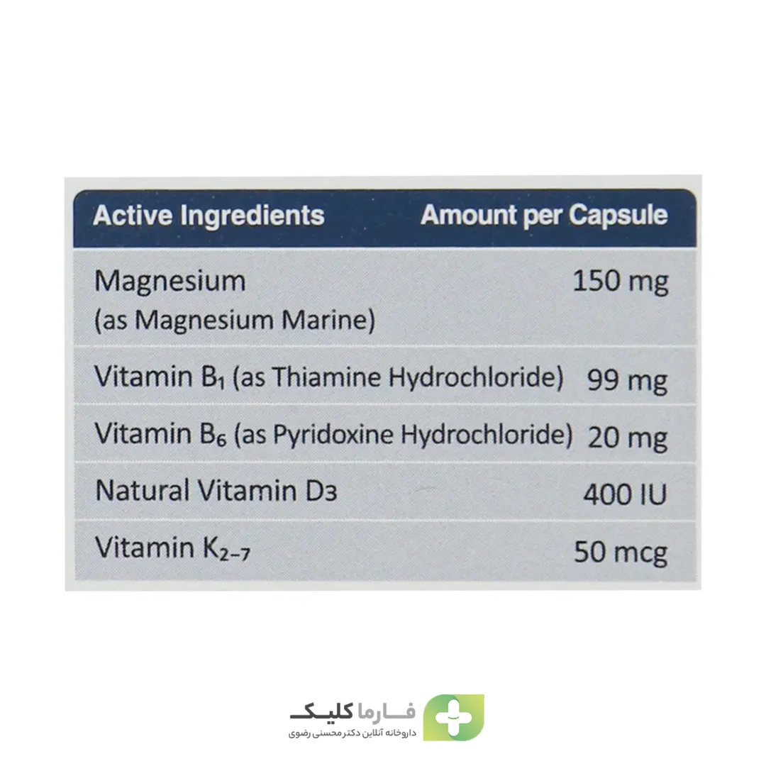 • حاوی منیزیم دریایی طبیعی و ویتامینهای B1، B6، D3 و K2