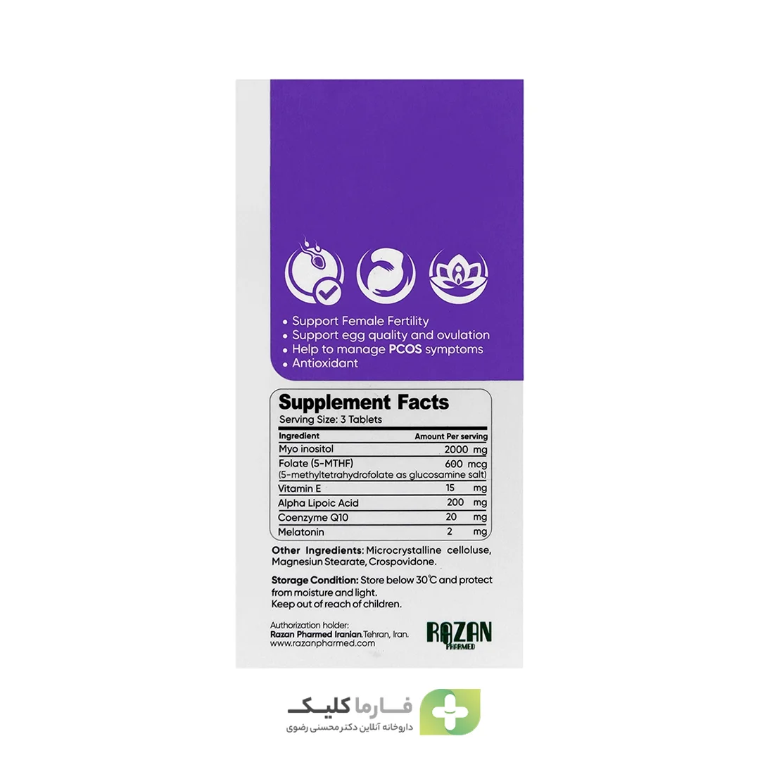 • حاوی مایو اینوزیتول، فولات، آلفا لیپوئیک اسید، ویتامین E، کوآنزیم کیوتن و ملاتونین