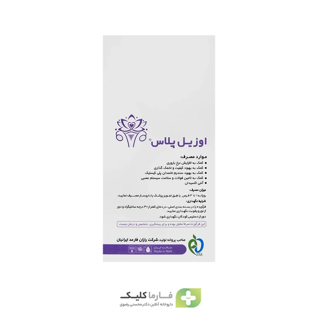 اوزیل پلاس یک مکمل تخصصی برای بهبود باروری زنان و تنظیم هورمونها است که به ویژه برای زنانی که با مشکلاتی مانند سندروم تخمدان پلیکیستیک (PCOS) مواجه هستند، مفید میباشد. این مکمل با ترکیبات فعال خود به افزایش کیفیت تخمک، حمایت از تخمکگذاری و سلامت کلی سیستم تولیدمثل کمک میکند و شانس بارداری را افزایش میدهد.ترکیبات موجود در اوزیل پلاس، شامل مایو اینوزیتول، فولات، آلفا لیپوئیک اسید، ویتامین E، کوآنزیم کیوتن و ملاتونین، اثرات آنتیاکسیدانی قوی دارند و از تخمکها در برابر آسیب ناشی از رادیکالهای آزاد محافظت میکنند. همچنین مصرف این مکمل میتواند چرخه قاعدگی را منظم کرده و علائم ناشی از اختلالات هورمونی را کاهش دهد.این محصول به فرم قرص عرضه میشود و بستهبندی 60 عددی آن، مصرف روزانه راحت و منظم را برای بانوان فراهم میکند.