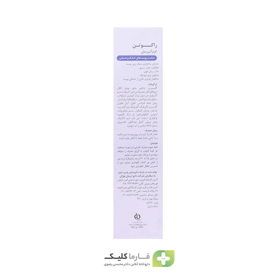 آبرسان راکوتن برای پوست خشک و حساس یک کرم سبک و مؤثر است که رطوبت پوست را بهطور عمیق تأمین میکند. این محصول با جذب سریع، نرمی و لطافت فوری را به پوست میبخشد و با فرمول Prebiotic، التهابها و تحریکات پوستی را کاهش میدهد. استفاده منظم از این آبرسان باعث حفظ سلامت و شادابی پوست خشک و حساس میشود و بستهبندی ۵۰ میلیلیتری آن استفاده آسان و بهداشتی را فراهم میکند.