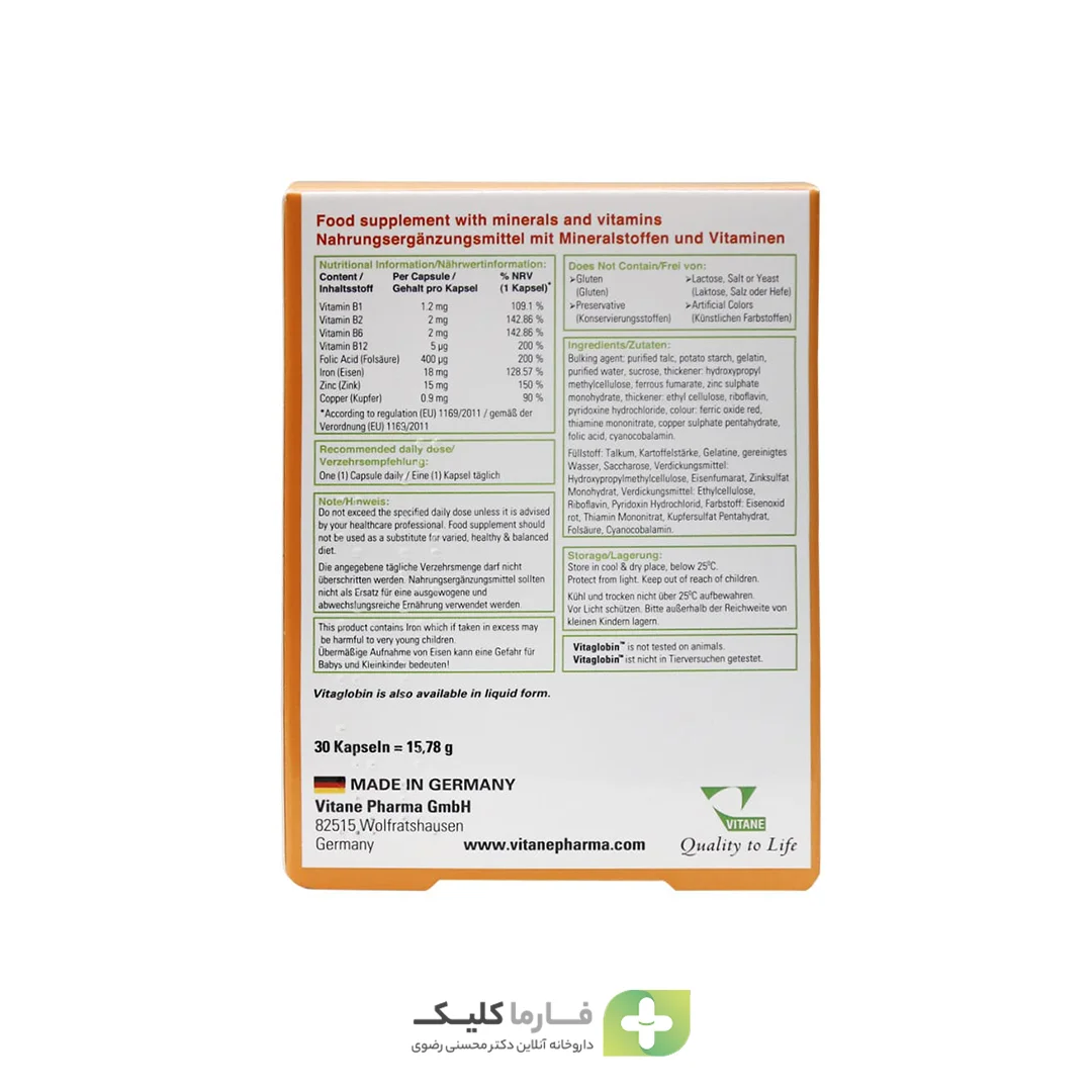 کپسول ویتاگلوبین ویتان 30 عدد