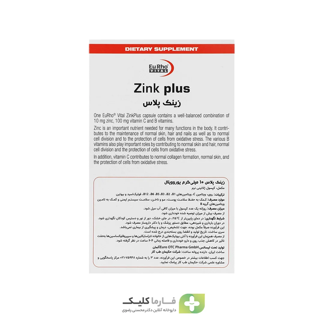 زینک پلاس 10 میلی گرم یوروویتال 60عدد